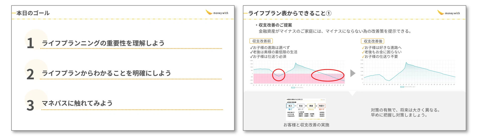 証券や保険の営業の方のお話しはどうしてもポジショントークになる可能性があると思うので、本当に自分のためになっているか疑ってしまうことがありますが、今は提案されても自信を持って質問できるようになりました。